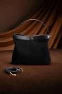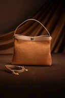 Hilya Bag memiliki 2 side 2 muka yang terdiri dari suede real material dan smooth real leather dengan kombinasi metalock berwarna gold membuat tas ini anggun dan classy.