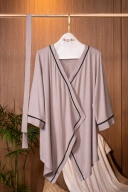 Pakaian rumah dengan model kimono yang dilengkapi tali pengikat mempermanis tampilan