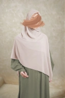 Tekstur bahan yang lembut dan ringan memberikan tampilan jatuh alami dengan kesan feminin. Tetap nyaman dipakai dan mudah dibentuk, membuat kerudung ini terlihat rapi tanpa perlu banyak penataan.