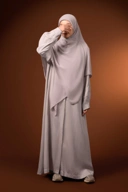 Havva abaya dengan siluet loose dengan bahan cupro yang nyaman dikenakan sehari-hari.