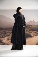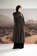 Desain jaket panjang full zipper dengan karet pinggang elastis yang menawan untuk menambah bentuk dan kesan feminin.