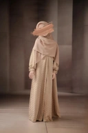 - Model abaya untuk anak-anak dengan bahan rajutan bertekstur timbul