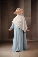 - Abaya model terbuka dengan kancing jepret bisa dipakai sebagai luaran maupun sebagai gaun