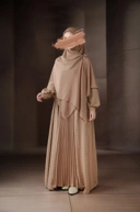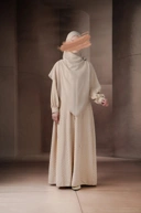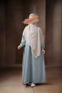 Abaya dengan kancing jepret yang bisa dibuka dan dipakai sebagai luaran maupun pasang sebagai dress