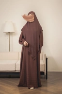 Terbuat dari kain bertekstur, dress ini memberikan siluet clean namun tetap memiliki dimensi visual yang menarik.