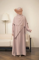 Desain dress kemeja panjang dengan kerah mandarin yang memberi tampilan rapi